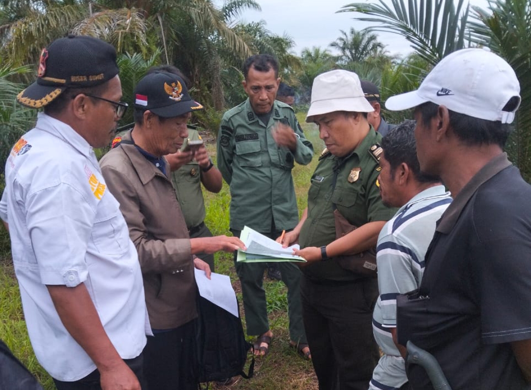 Empat personel KPH hadir bersama Kepala Desa Sei Apung, Sudarto Tamba, dan tokoh masyarakat Hulam Dolok Saribu.